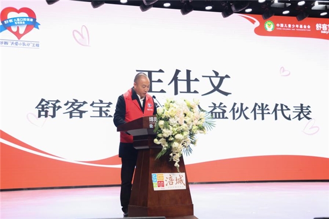 作为舒客宝贝的公益伙伴,王仕文在发言中强调儿童龋齿的潜在危害,希望活动能以公益为纽带,持续通过专业的防龋服务与科普传播,帮助更多中国儿童建立科学护牙意识,切实改善口腔健康状况,为孩子们的成长筑牢健康根基。