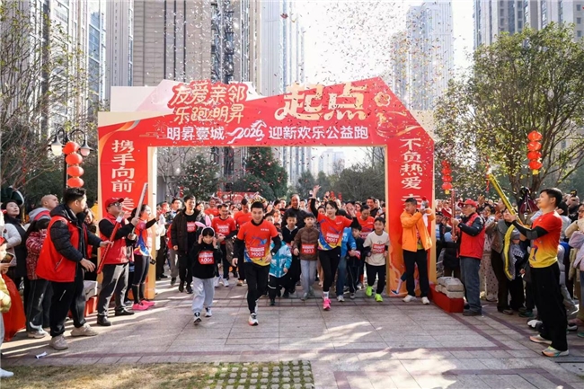 (2026年1月10日,湖南长沙) 新年首日,寒风中涌动着一股暖意。上午,一场以“友爱亲邻 乐跑明昇”为主题的2026元旦迎新公益跑活动,在长沙市雨花区明昇壹城二期火热举行。本次活动由明昇二期业主志愿服务队这一基层群众组织自发发起、精心筹办,吸引了近千名居民参与,生动展现了在“共建共治共享”理念引领下,社区自我管理、自我服务焕发的蓬勃活力,是将健康中国、志愿服务和邻里互助等宏观倡导转化为鲜活社区实践的生动缩影。