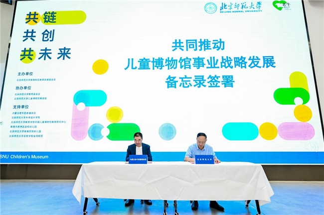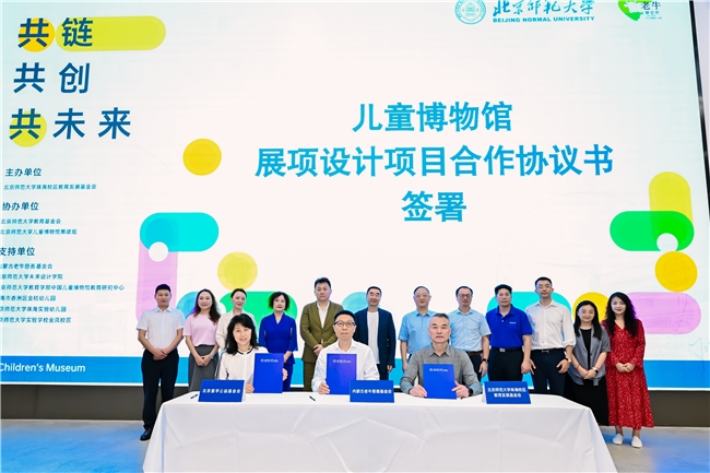 在与会嘉宾的共同见证下,双方代表签署了《北京师范大学-内蒙古老牛慈善基金会共同推动儿童博物馆事业战略发展备忘录》。根据备忘录内容,未来双方围绕儿童博物馆的理念构建、场馆建设、人才培养、标准研制、理论研究、国际合作与政策推动等七大方向携手推进各项工作落地,建立长期战略合作关系。随后,老牛基金会、北京童学公益基金会与北师大珠海校区教育发展基金会三方签署了《北京师范大学儿童博物馆展项设计项目合作协议书》,为博物馆建设与后续运营提供坚实保障。